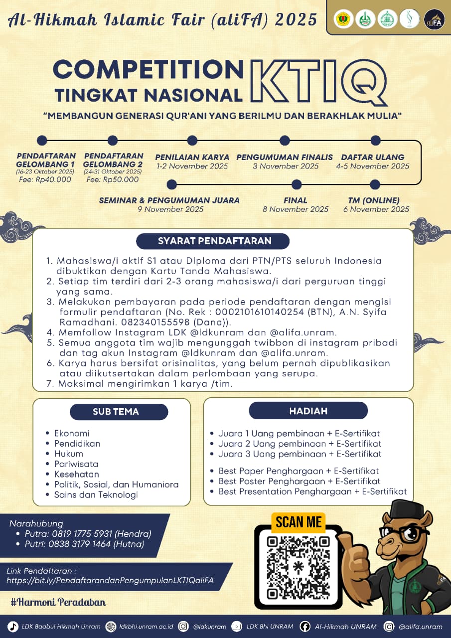 Link Pendaftaran: https://bit.ly/PendaftarandanPengumpulanLKTIQaliFA